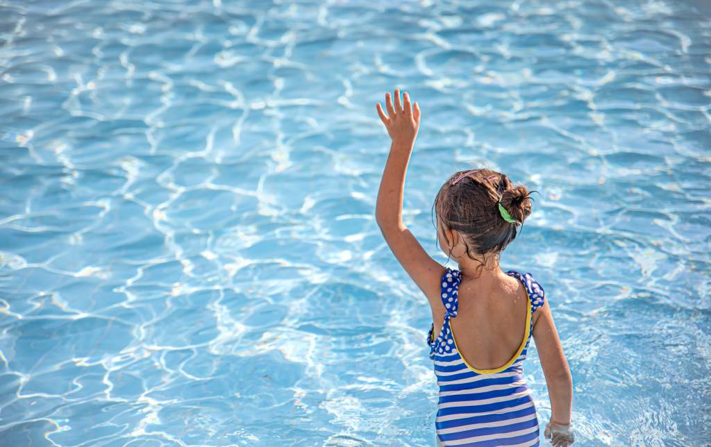 Une pataugeoire chauffée pour les enfants dans un espace réservé.