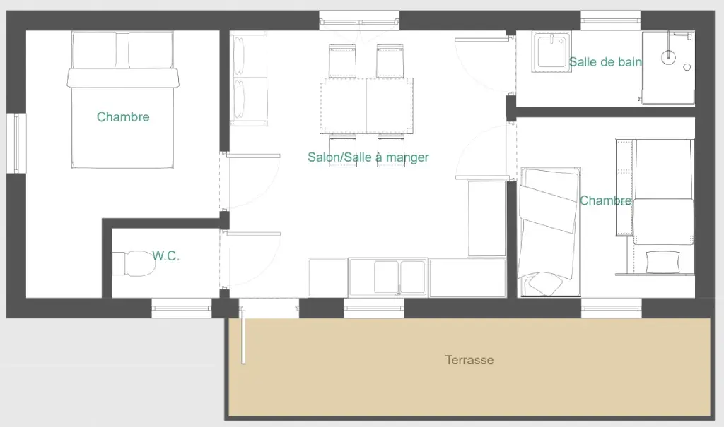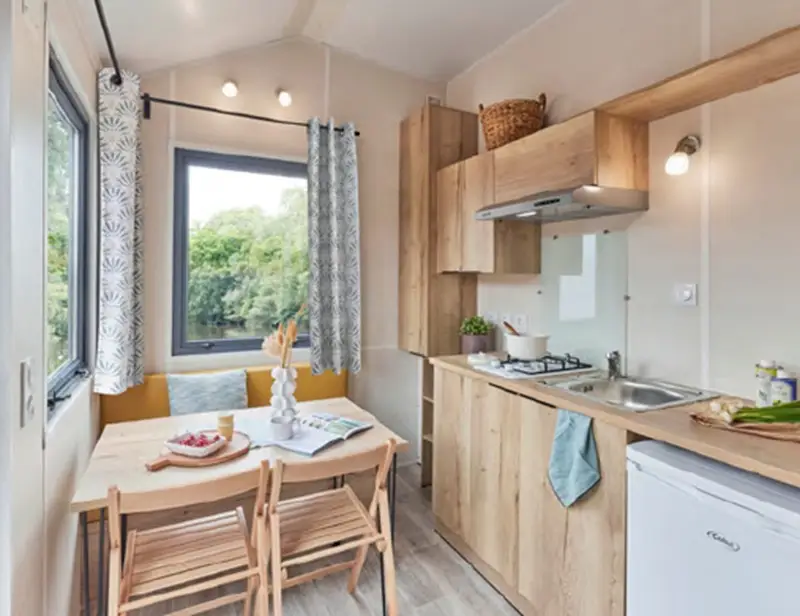 Vivez des vacances confortables et raffinées dans nos hébergements Élégance, tous équipés d’une cuisine avec séjour, d’une salle de bain, de WC, lave vaisselle et d’une terrasse couverte avec salon de jardin & plancha. Les draps et serviettes sont également inclus.